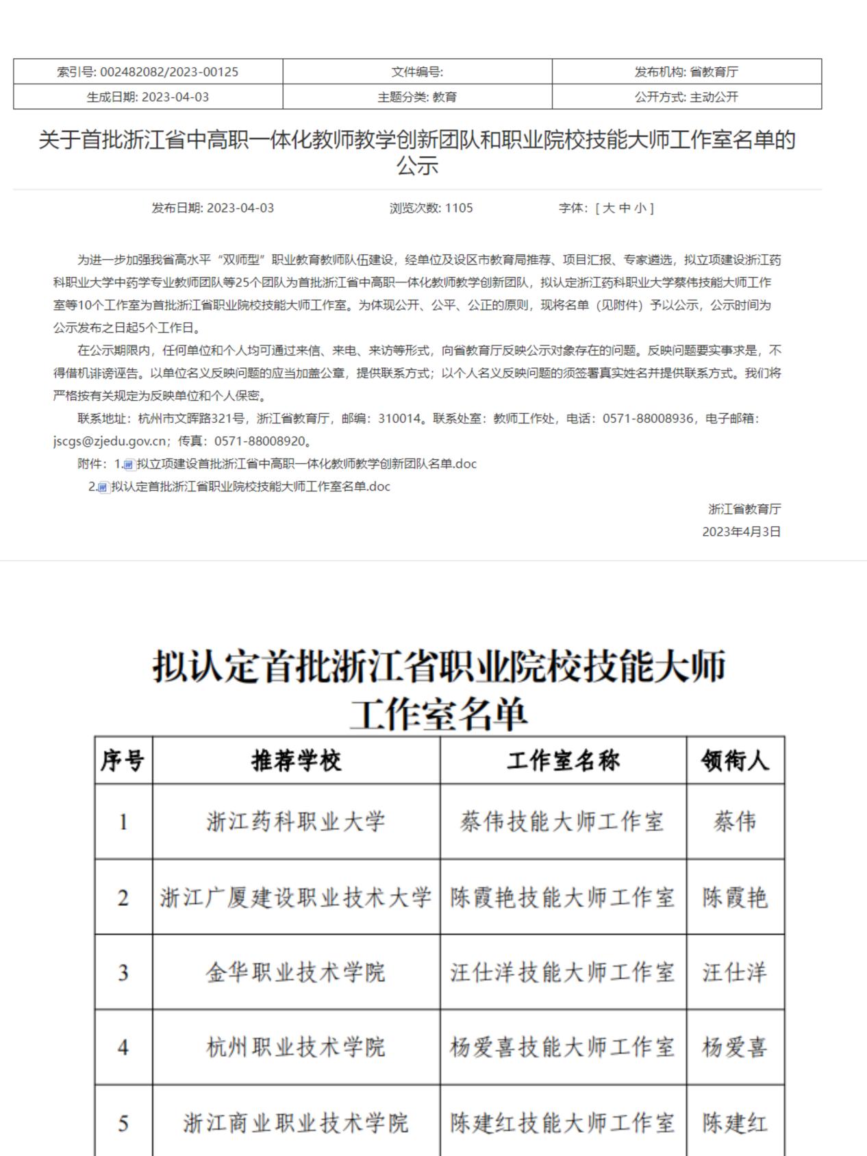 近日,浙江省教育厅正式公布了首批浙江省中高职一体化教师教学创新团队和职业院校技能大师工作室名单,由农学院园林专业教师汪仕洋领衔成立的技能大师工作室成功获批首批浙江省职业院校技能大师工作室。