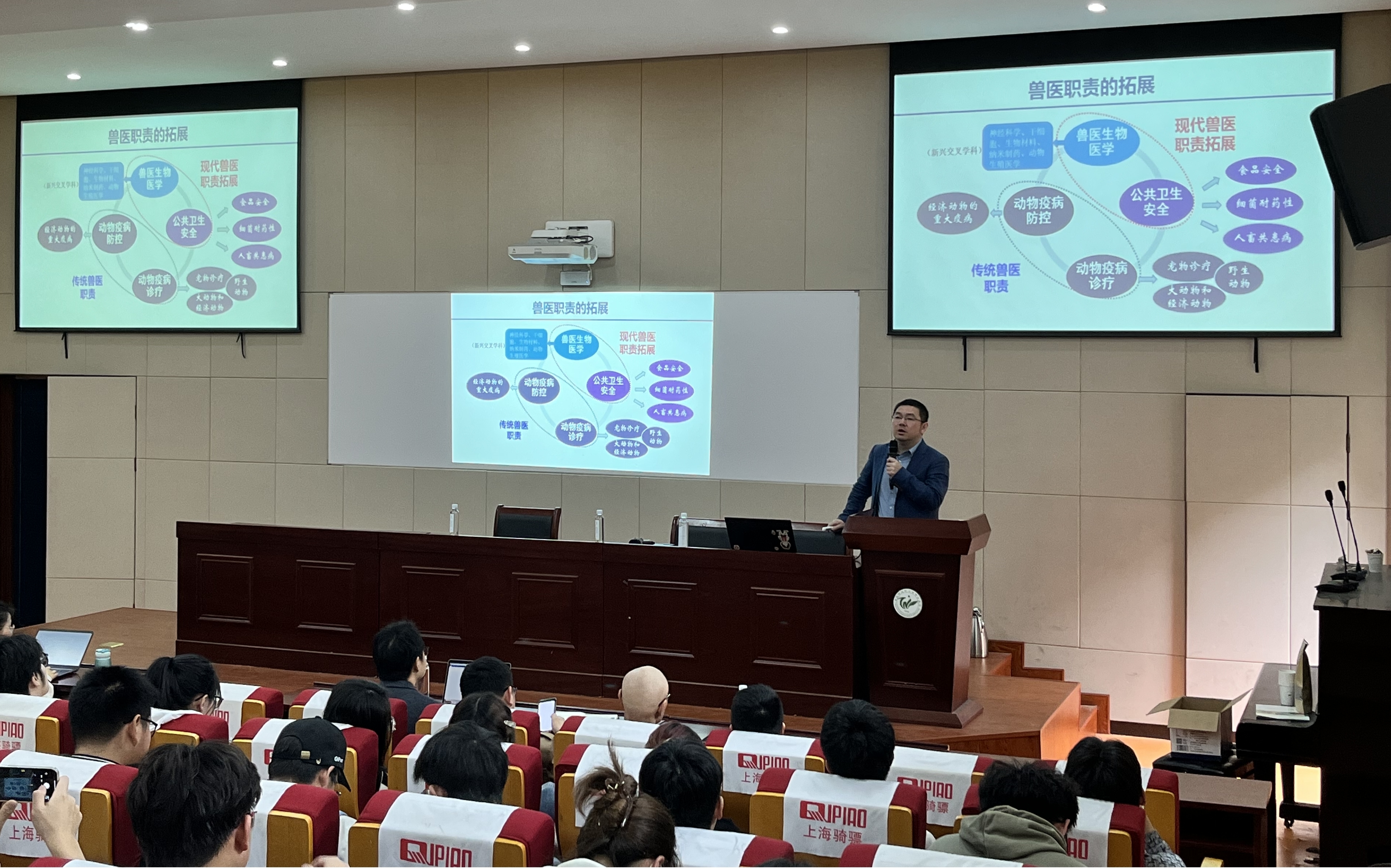在介绍到动物疫病防控工程发展趋势和需求时,周斌教授指出,兽医学科正在经历以学科汇聚为标志的第三次革命,一些过去关系不大的学科,如物理学、工程学、化学、信息科学、生态学、人工智能、机器人等,也在积极地汇聚到兽医学领域中来,其理论和技术在动物疫病防控领域都得到应用,让在座的同学们认识到了未来兽医发展的无限可能与广阔前景。