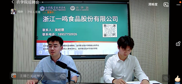 本次招聘会还特别开设了现场“直播带岗”环节,农学院学工办主任与四家企业代表化身“带岗主播”入驻直播间,向学生云端解说就业服务、人才政策和岗位推荐,近700余名学生参加了线上直播。