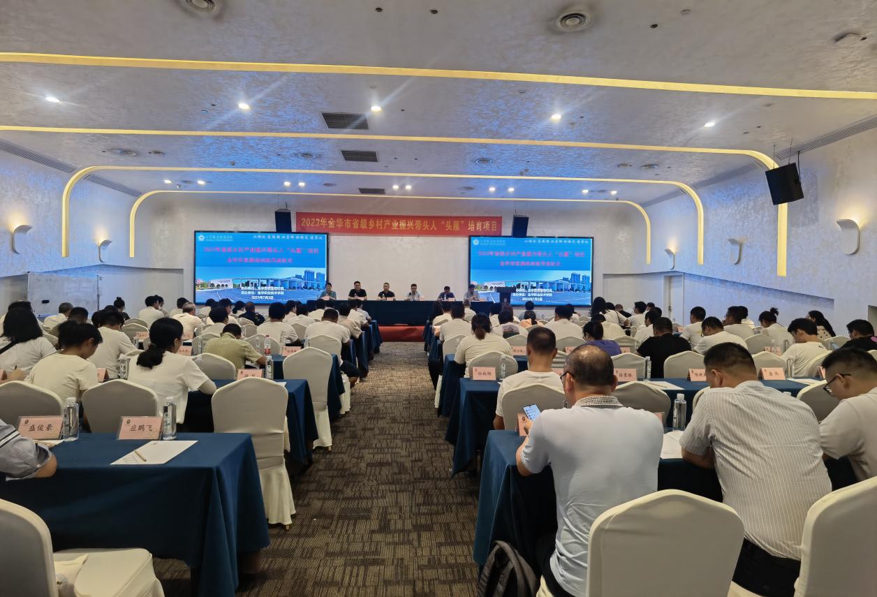 根据《浙江省农业农村厅关于实施省级乡村产业振兴带头人培育“头雁”项目的通知》,并结合我市主导特色产业发展和农民实际需求,7月3日上午,2023年省级乡村产业振兴带头人“头雁”项目金华市首届培训班在金华举行开班仪式。金华市农业农村局党委委员、机关党委专职书记杨小明、金华职业技术学院副校长张雁平、金华市畜牧农机发展中心主任祝苏武、人教处处长李关春、金职院继教处处长陆靓霞、农学院党委书记吴瑞清及专业导师、创业导师以及100名“头雁”培训班学员参出席开学典礼。会议共有八项议程,农学院党委书记吴瑞清主持会议。