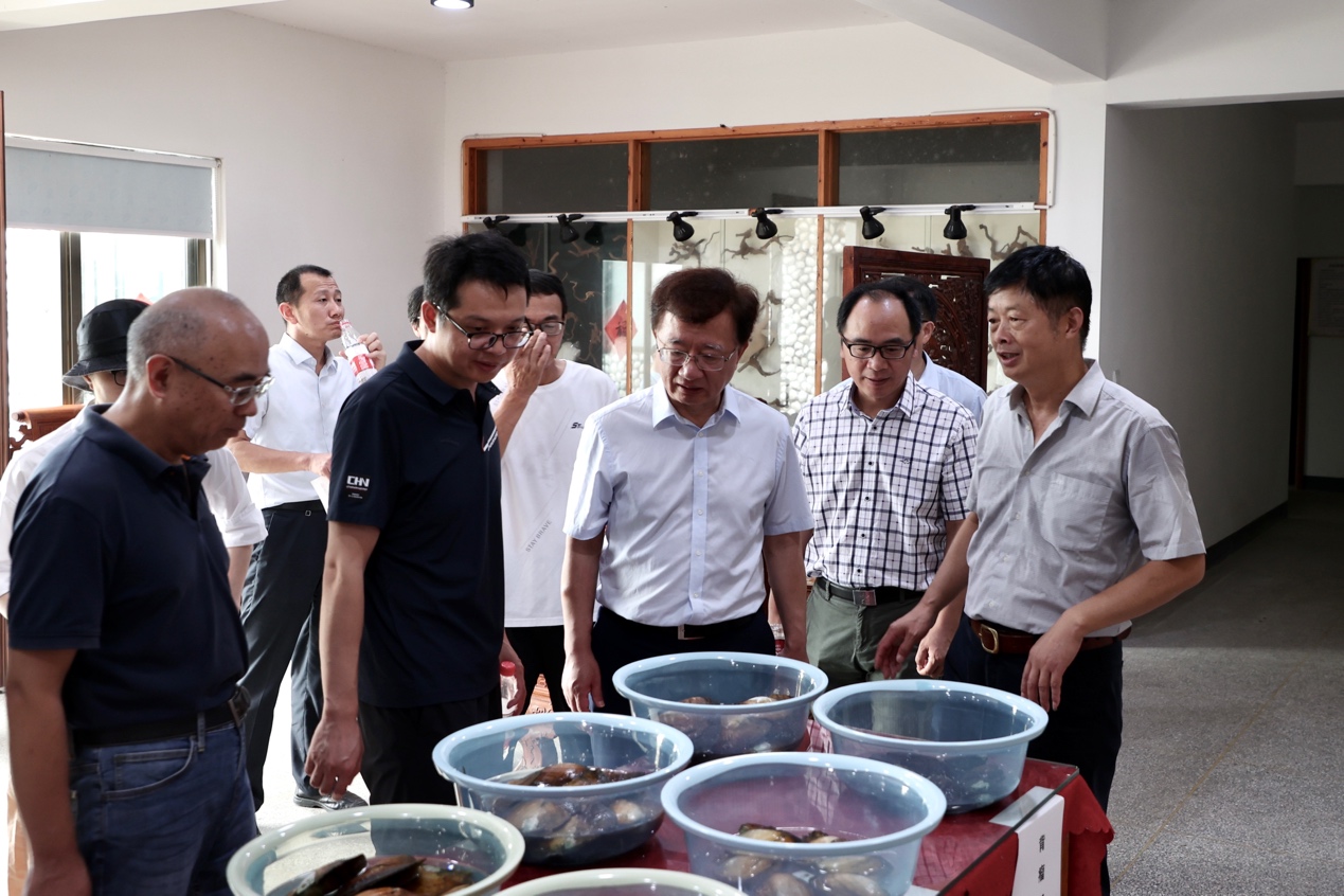 首先在国家贝类产业技术体系金华综合试验站核心示范区(国家级三角帆蚌良种场)开展调研,实际走访了金华试验站核心示范区育苗室、小蚌培育池、良种亲蚌培育池、配种池、综合实验楼贝类标本室;现场查看了试验站保种和选育的背瘤丽蚌、褶纹冠蚌、鹰蚌和不同三角帆蚌新品系;听取了我校农学院罗雨教授作为金华试验站新任站长关于“淡水珍珠产业现状及存在问题”的汇报。李总工和宋首席对金华站的工作给予了肯定,并对金华站未来工作提出了更高的要求!调研组和与会领导、专家和代表就淡水珍珠产业高质量绿色发展的技术需求展开了充分的讨论,为我国淡水珍珠产业的可持续发展指明了方向。