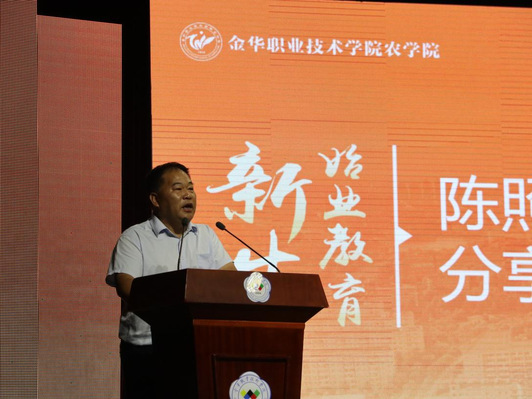 第十九届亚运会火炬手、第五届全国乡镇优秀企业家、浙江省优秀企业家、浙江省劳动模范、浙江省乡村振兴带头人“金牛奖”获得者、浙江米果果生态农业集团有限公司董事长陈照米为大家分享了他的爱农情怀。2012年他将自己发展不错的建材企业股份转让,把山下湖镇解放村流转的3000多亩土地建设成了米果果小镇。11年来,他扎根乡村,一步一个脚印,用心呵护自己的美丽田园梦想,用一片土地带活连片农民致富。他寄语新生要做到四个“qi”和四个“力”,即不生气、不泄气、不抛弃、不放弃,和充沛的精力、不懈的努力、坚强的毅力和必胜的定力。