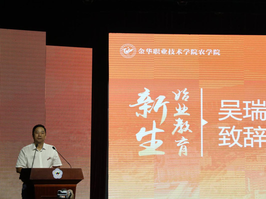 院党委书记吴瑞清以《厚德、精技、笃行,遇见更好的自己》为题殷切寄语新生。“如果说考上985、211、高职院校、成教生有什么不同?那只是起跑点不一样罢了,谁能先到达成功的彼岸,关键还要看谁跑的速度快,谁跑的更持久,谁在自己选择的赛道上先积累到‘1万小时’”。他对新生提出了三点希望:第一,要牢记“永争第一,敢创唯一”的金职精神,厚德载物、争创一流,擘画青春新蓝图;第二,要传承好“从劳力上劳心”的院训,精技强能、知行合一,绘就强农共富图;第三,要根植好“尚农安天下、尚劳以修身”的观念,尚农乐耕、笃行不怠,实现更加精彩人生。