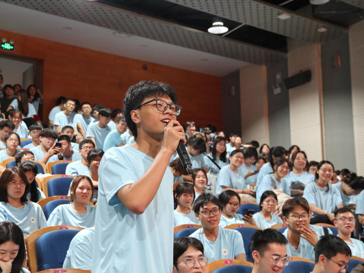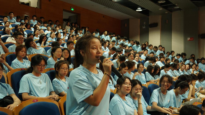 “同学们,我们的院训是什么?”“东教五号楼大门口放了三块牌匾,分别是什么?”“农学院现在一共有哪五个专业?”。本次始业教育,学院还特地穿插了“院情知识竞答”,用互动的方式来拉近与新生们的距离。同学们踊跃回答,会场气氛热烈。