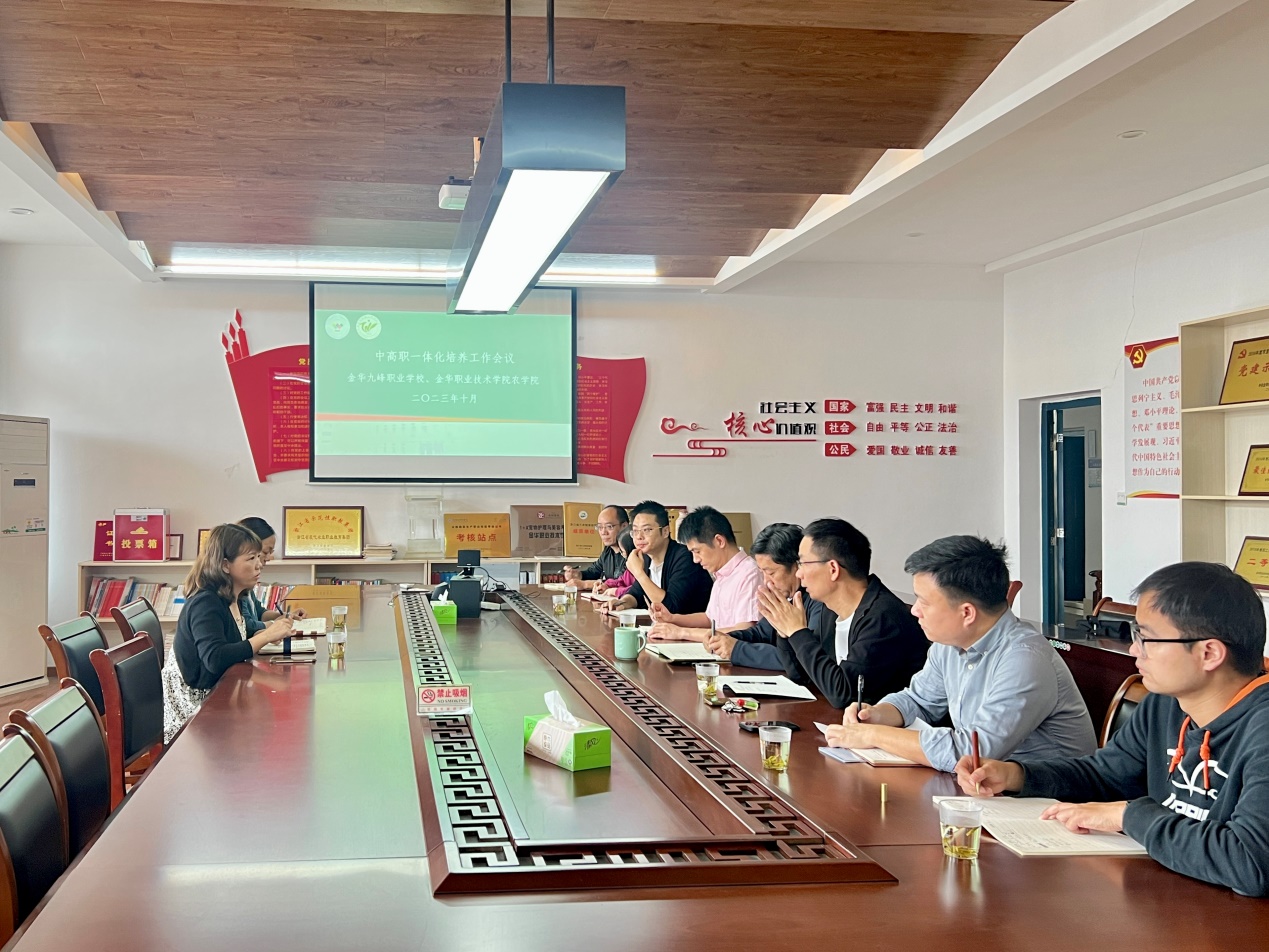 为进一步提升现代农业专业群中高职一体化人才培养质量,落实落细一体化人才培养方案。近日,金华九峰职业学校副校长等来校交流畜牧兽医、园林技术等中高职一体化专业人才培养思路,农学院相关负责人、专业主任等参加研讨会。