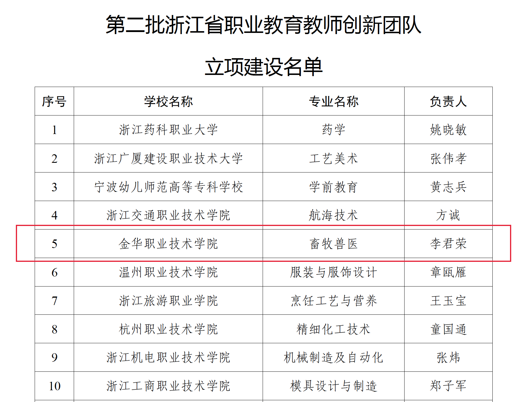 近日,浙江省教育厅办公室关于公布了第二批省级职业教育教师创新团队立项建设名单,我校畜牧兽医教师创新团队成功入选。