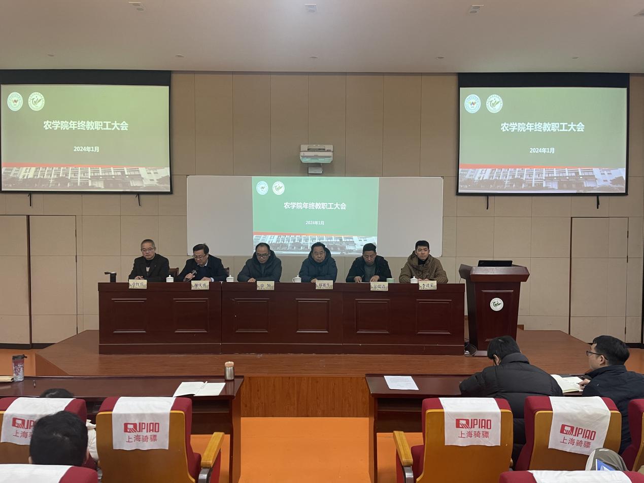 1月22日,农学院在骑骠报告厅召开年终教职工大会,校党委委员、纪委书记徐领,学院名誉院长郑寨生,学院领导班子成员及全体教职工参加会议,会议由院党委书记吴瑞清主持。