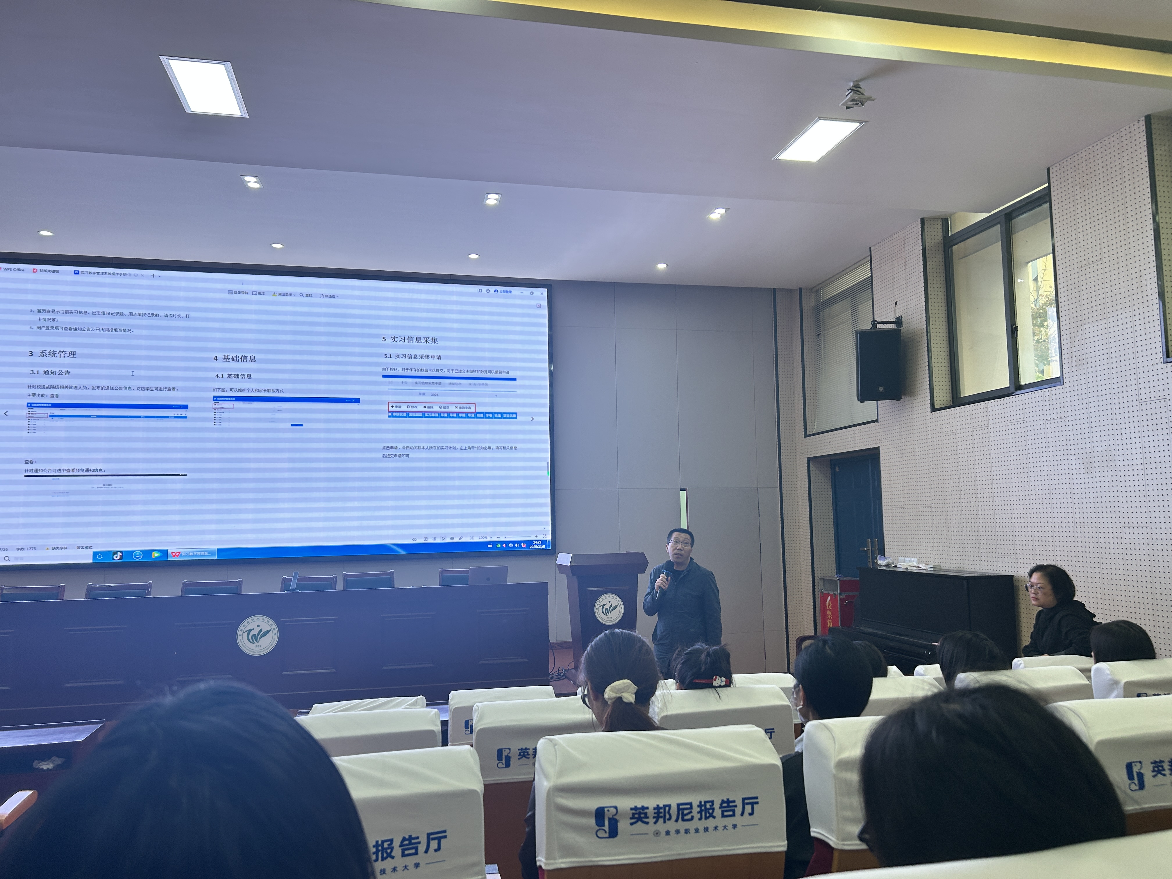 为切实解决学生实习筹备阶段的实际困惑,王胜刚老师针对三方协议签订流程、注意事项、权责划分等学生重点关注的问题进行细致讲解,现场演示了实习管理平台的注册登录、日常打卡、实习日志提交等操作流程,并耐心解答了学生关于实习单位对接、保险办理等方面的疑问。互动环节中,师生交流热烈,问题针对性强,现场答疑高效务实,有效消除了学生的焦虑情绪。