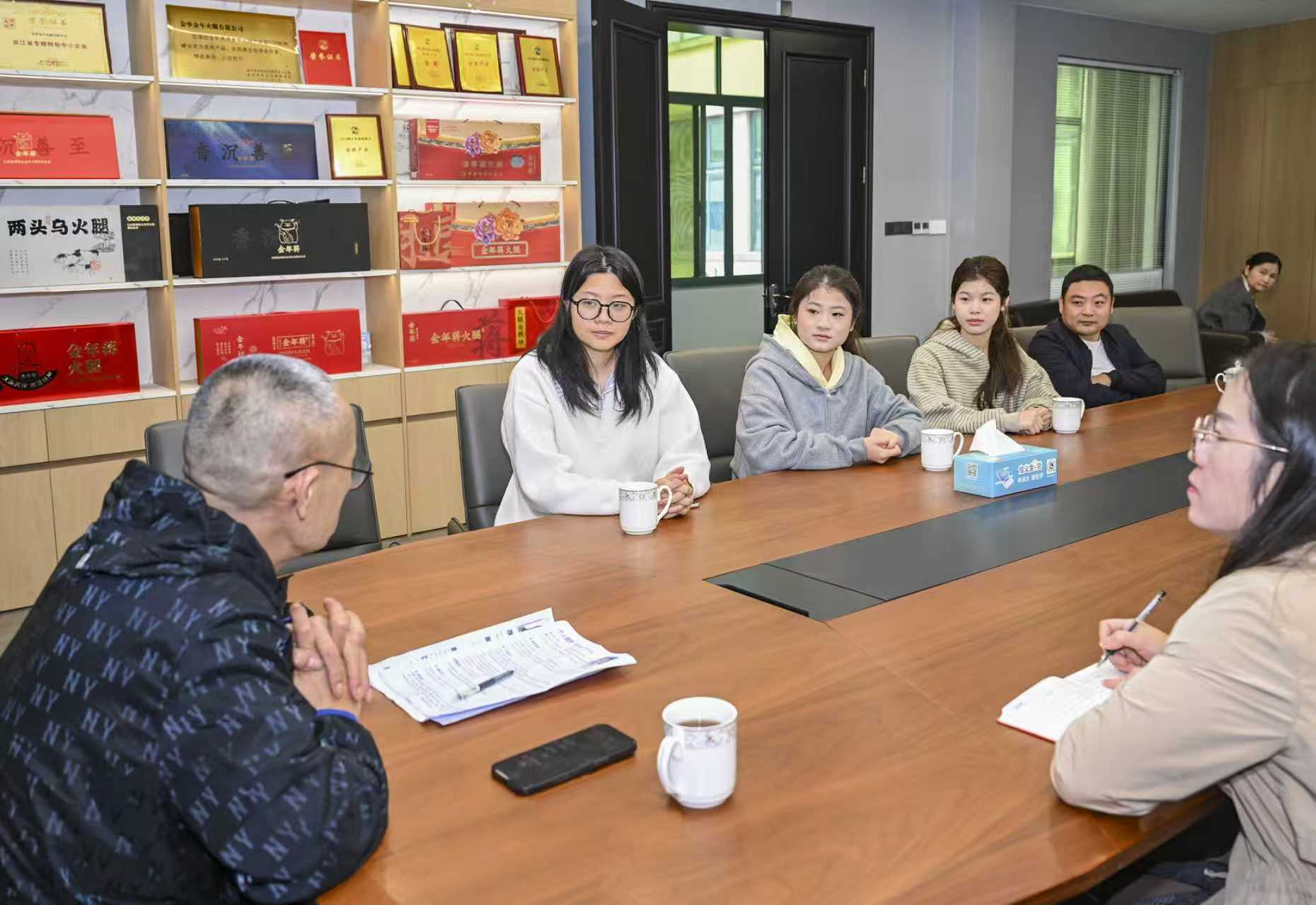 2025年11月17日上午9:00钟,绿色食品生产技术专业主任解华东教授带领李申、陈怡、祝欣涵三位2026届同学前往金华金年火腿有限公司开展本专业学生的实习就业推介工作。