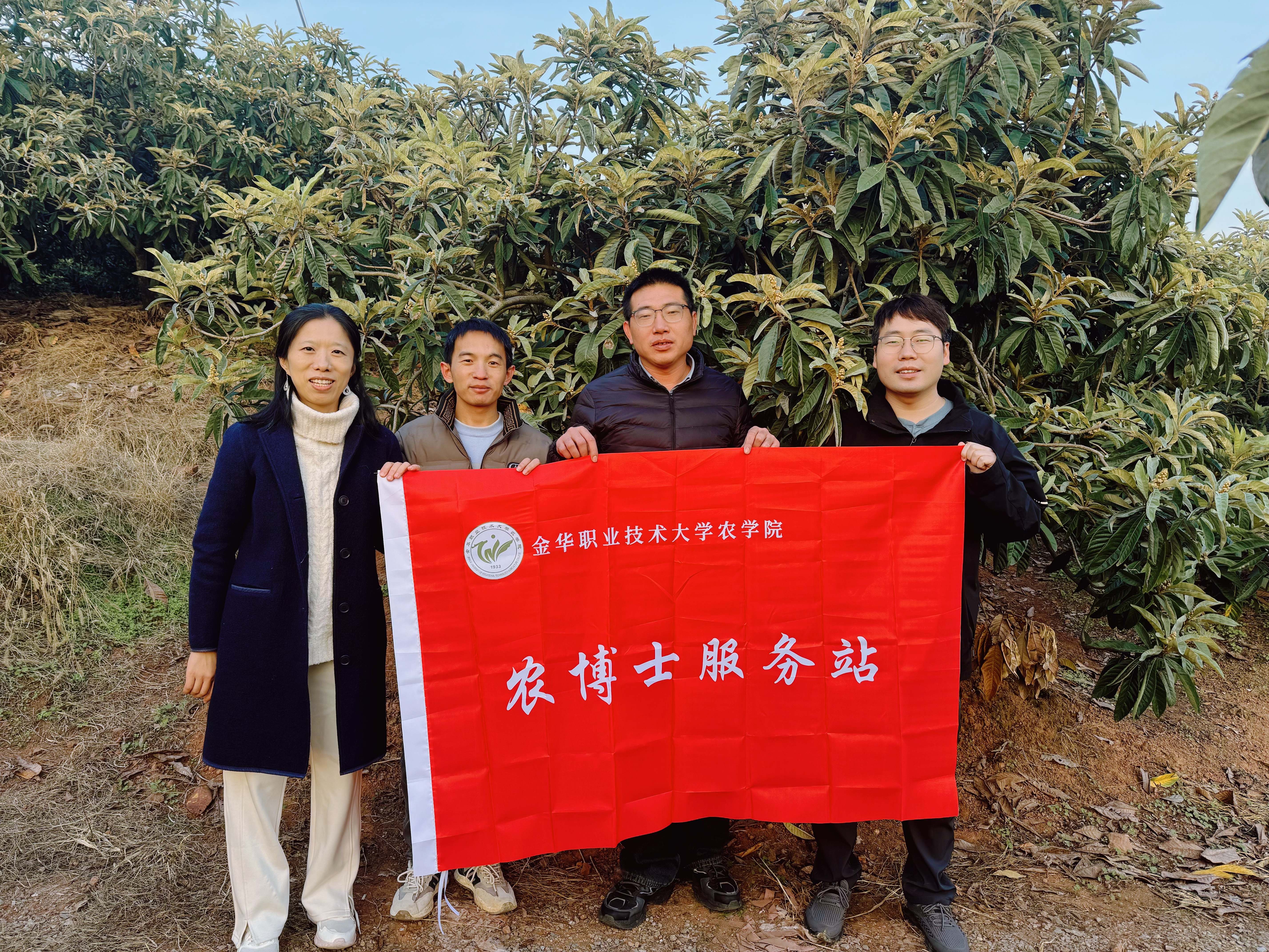 为深化产教融合、助力乡村产业发展,同时拓宽毕业生就业渠道,11月18日,金华职业技术大学农学院博士联谊会会长朱海峰博士与园艺技术专业副主任李真博士、康华军博士,赴金华市金东区曹宅镇岩后村平山农场枇杷基地,开展产业调研、技术对接与访企拓岗专项活动。