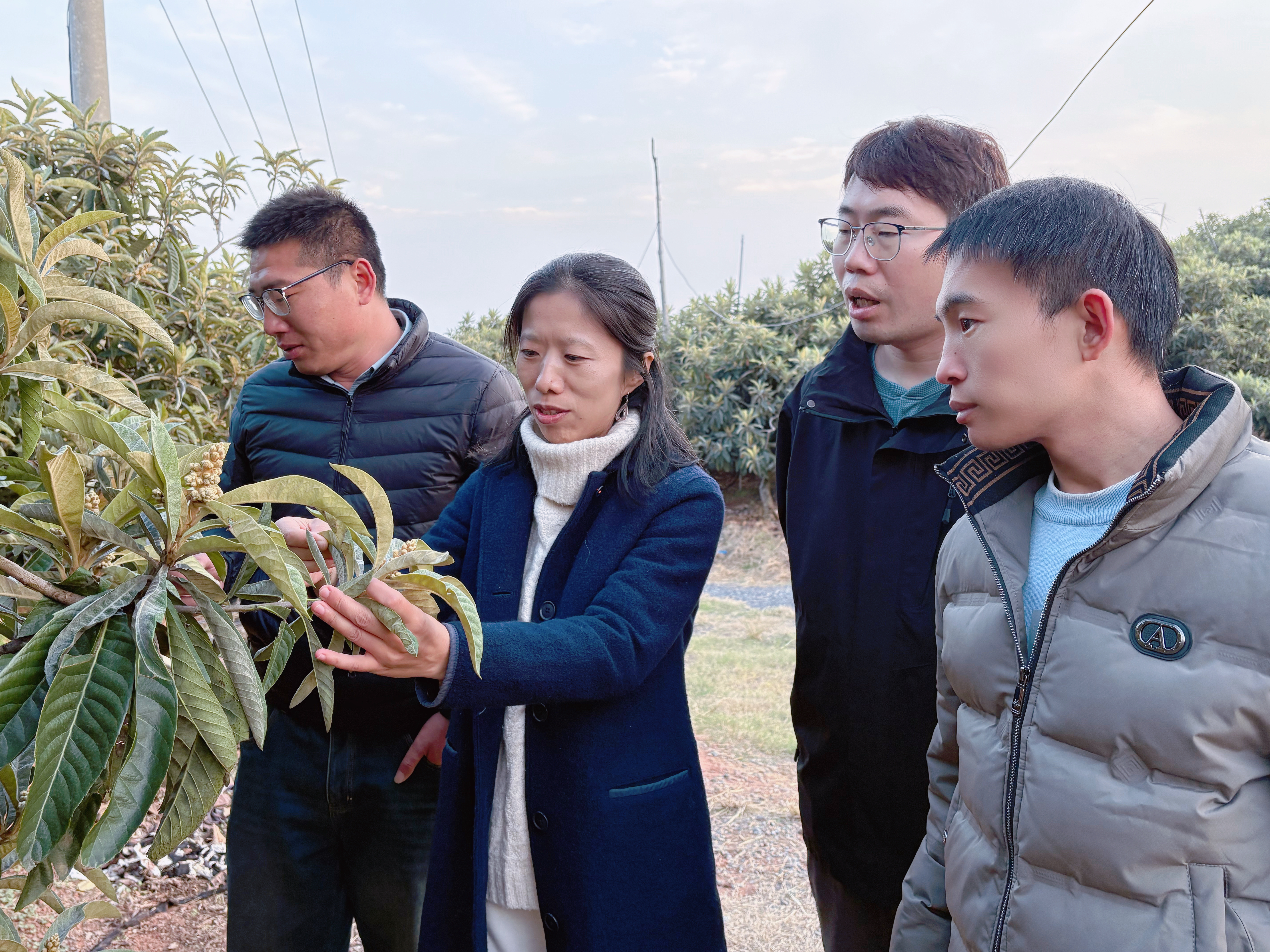 抵达基地后,博士团队首先与农场负责人深入交流,实地查看枇杷生长状况,详细了解基地种植规模、品种特性、产量效益及当前面临的核心难题。针对农场提出的“通过提升枇杷园蚯蚓数量来进行土壤改良”、“枇杷多余花蕾加工再利用”、“枇杷果实成熟期裂果”等重要技术需求与关键种植问题,三位博士结合专业研究成果,从栽培技术优化、生态调控措施、品种改良方向等方面展开细致分析,提出初步解决方案,并就后续建立长期技术服务机制达成共识,明确将通过“线上指导+定期驻点”模式,为基地提供持续技术支持,加速科研成果落地转化。