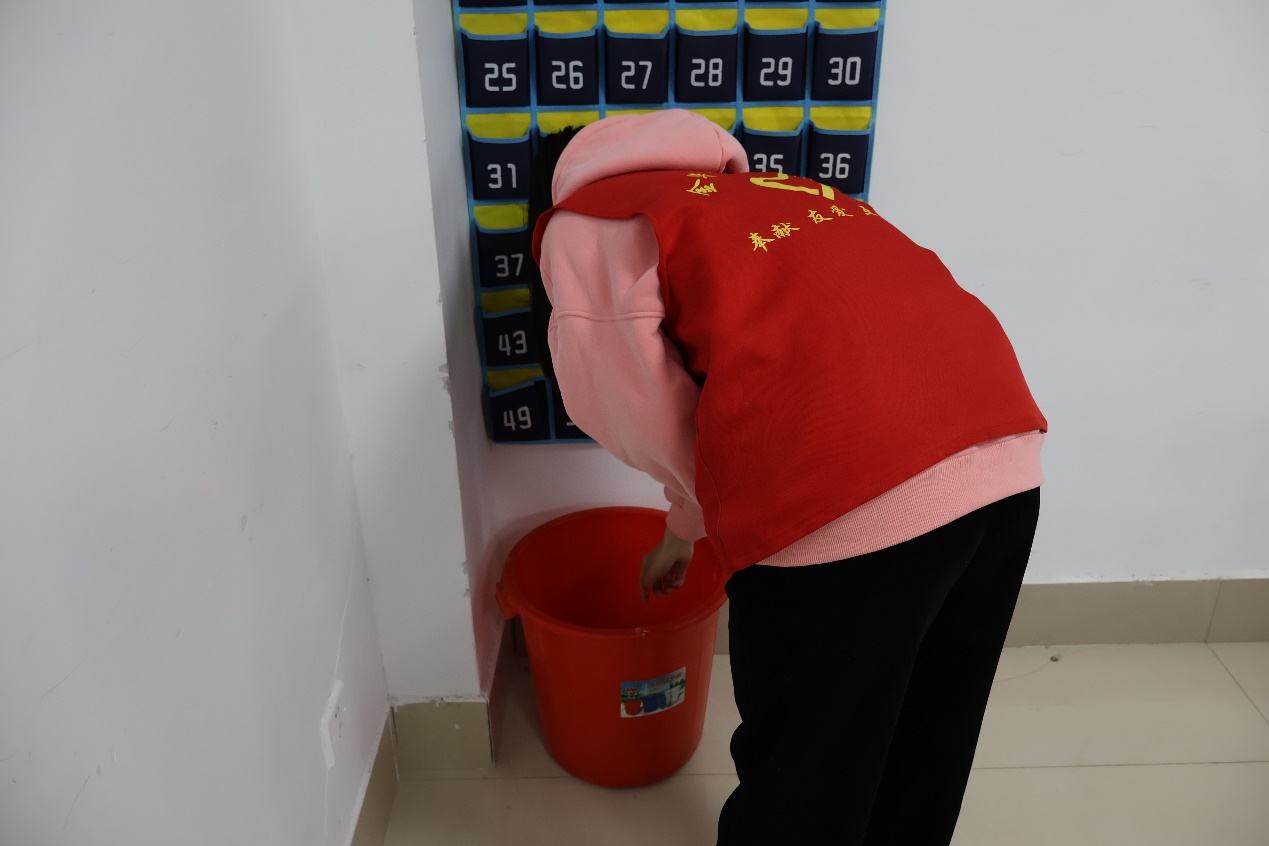 志愿者们挥动扫帚,将落叶、灰尘清扫至路边,再用簸箕仔细收集,装入垃圾袋;花坛边,同学们小心的拨开绿植,用夹子夹出隐藏的垃圾;教学楼内,志愿者们对每一间教室展开细致的清扫,用黑板檫将原本杂乱的黑板变得乌黑发亮,为老师的授课提供整洁的教学版面,认真的将角落堆积的灰尘和垃圾清扫干净,不放过任何一个卫生死角。