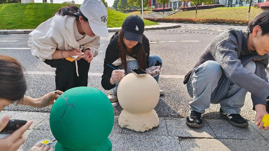 活动在2025年4月2日于农学院前的石墩区域正式开启。活动现场,参与的大学生们早早集合,准备好各类绘画工具,颜料、画笔、调色盘等一应俱全。这些石墩原本朴实无华,却在同学们的天马行空下,成为艺术创作的独特画布。
