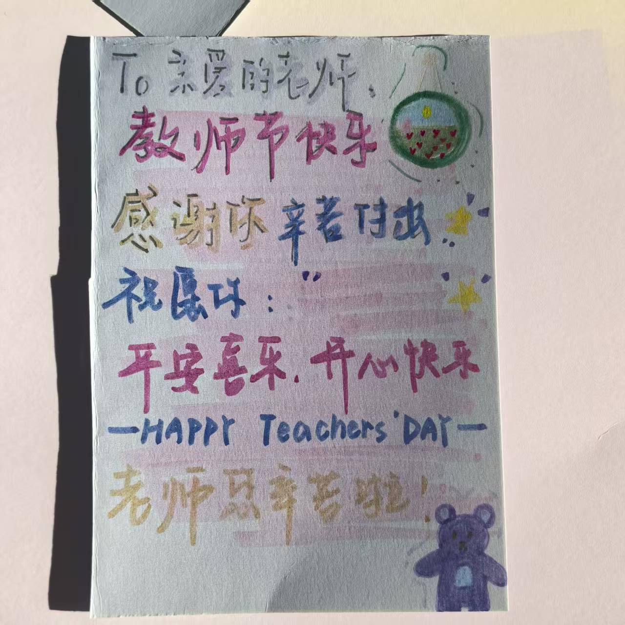 参与活动的同学表示:“以前总觉得不好意思当面跟老师说感谢,这次亲手做贺卡,感觉把心里话都‘装’进去了,送出去的时候也更有意义。”