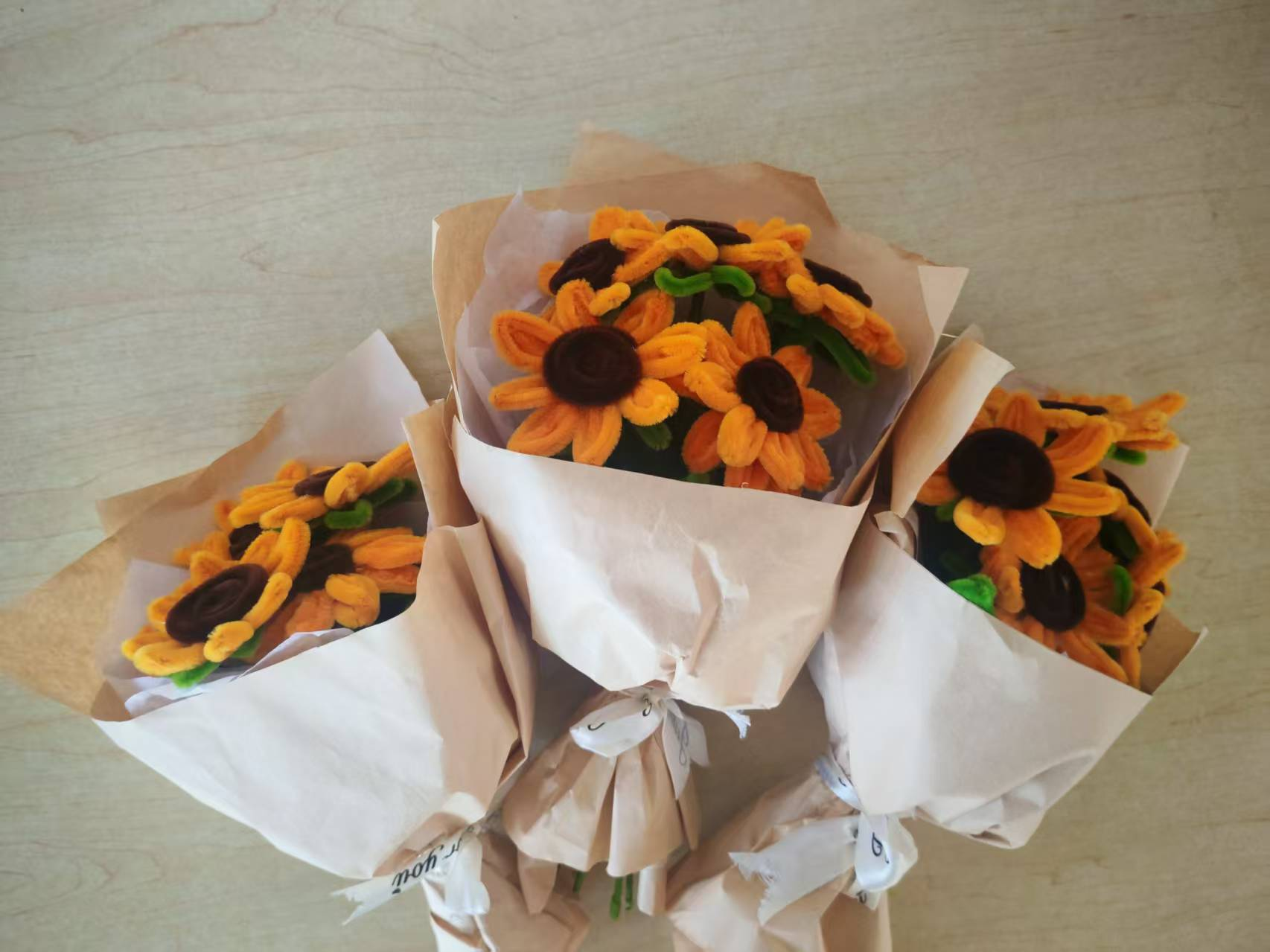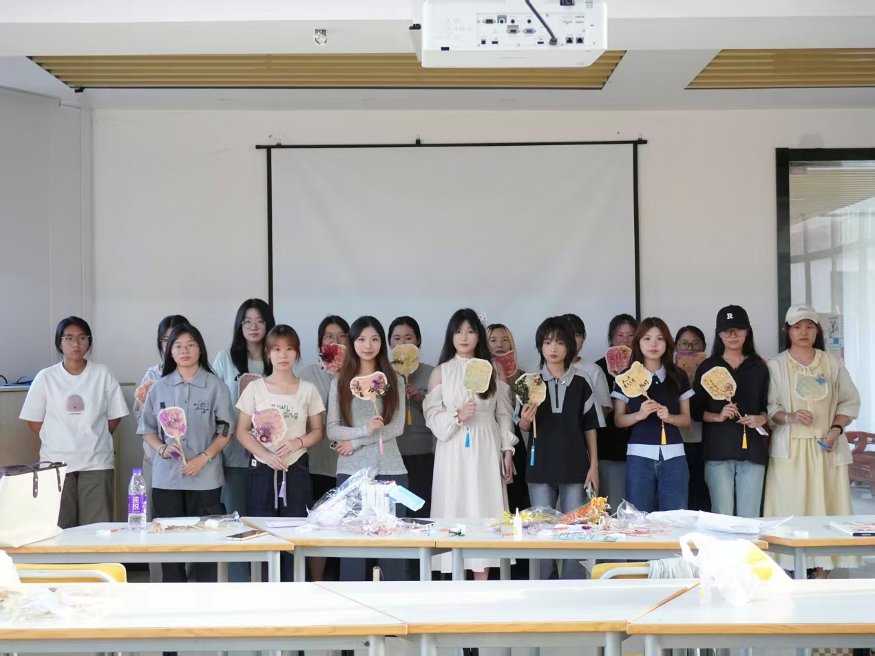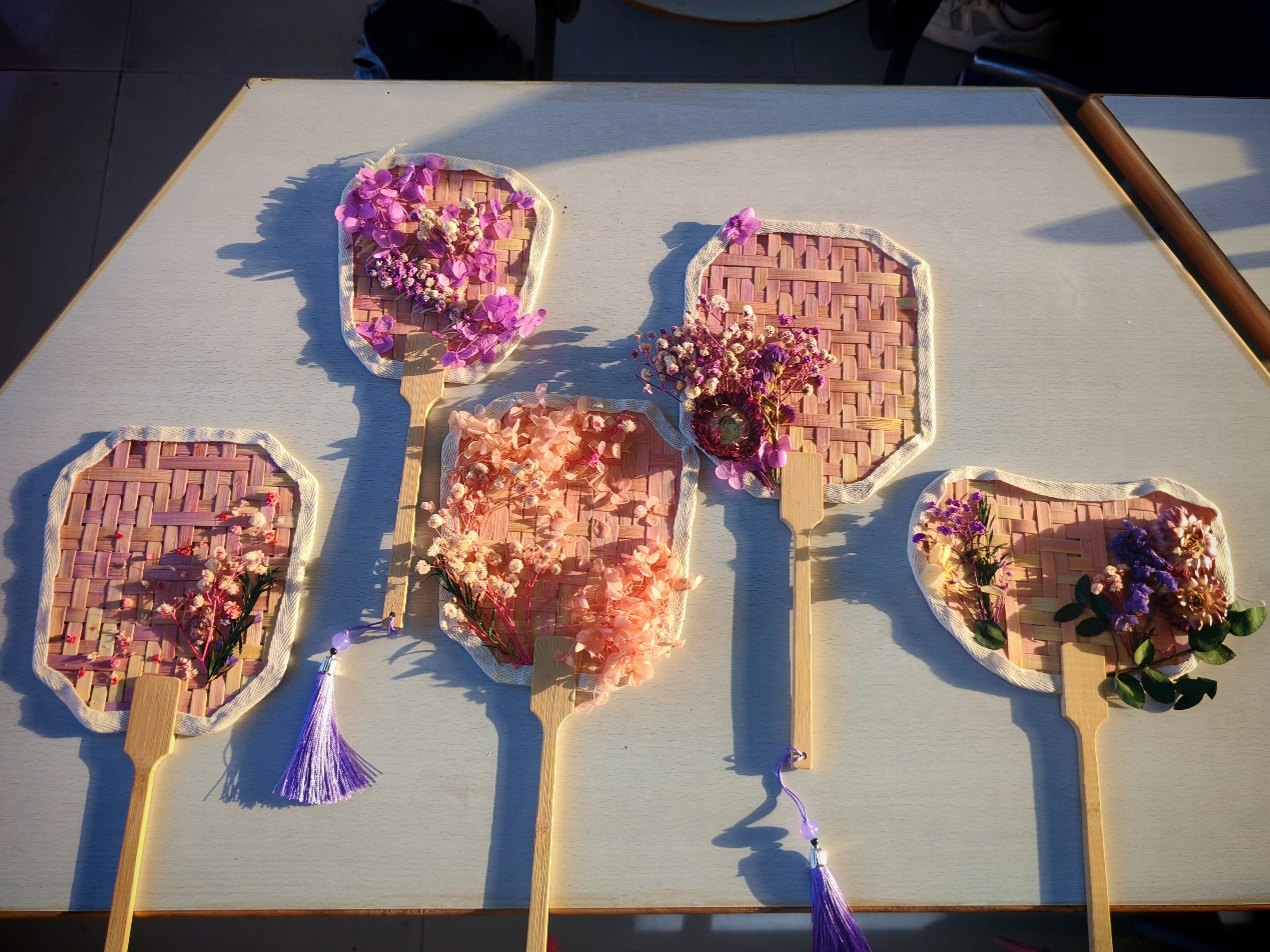 活动尾声,“劳动成果展”如约而至。一把把团扇整齐排开,有的纹路工整,有的花画巧妙,有的扇边服帖,每一把都是汗水与智慧的结晶。学院还为优秀创作者送上亲手制作的向日葵花束,这些蕴藏“向阳而生、团圆美满”美好花语的花朵,也表达了学院对同学们的中秋祝福。