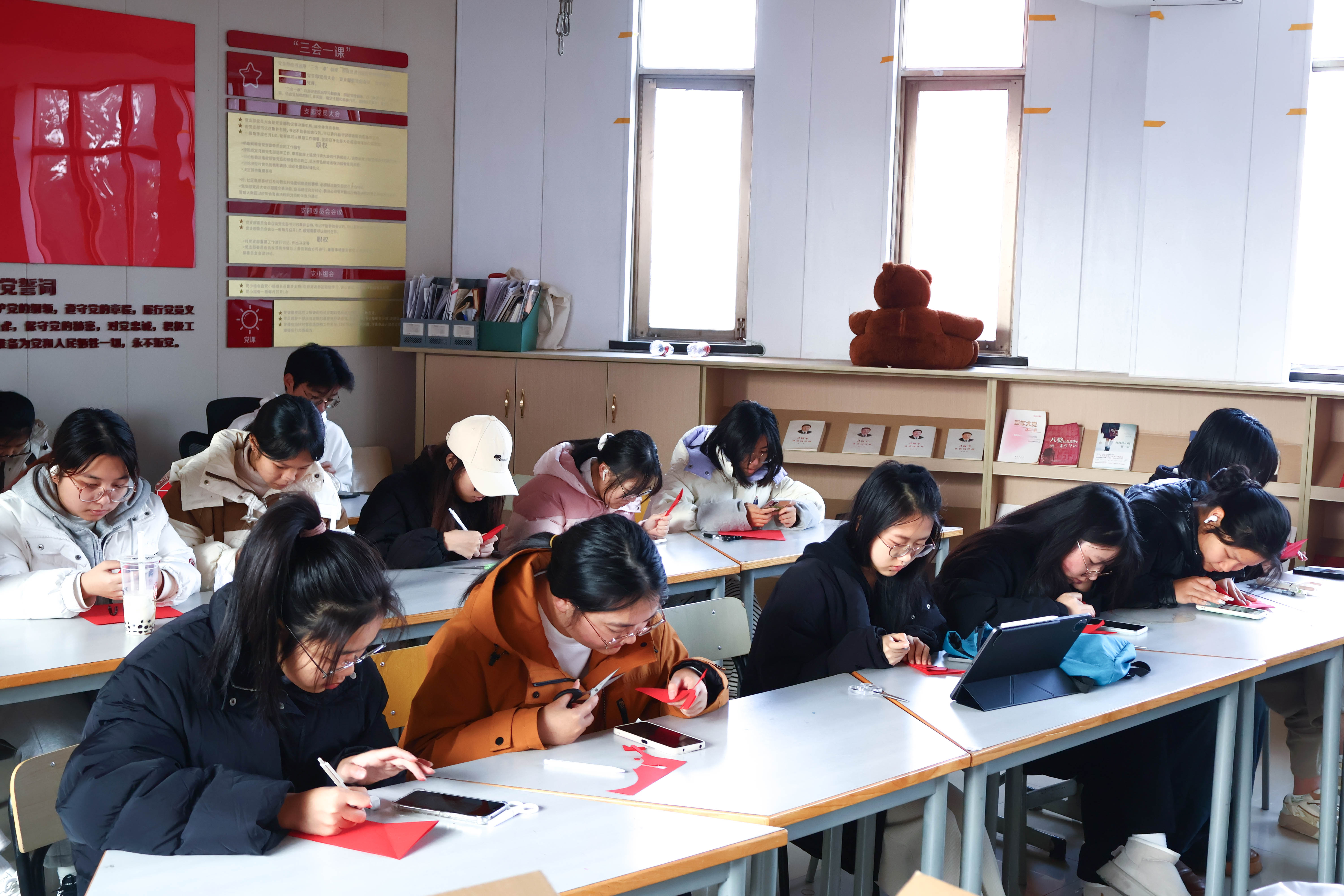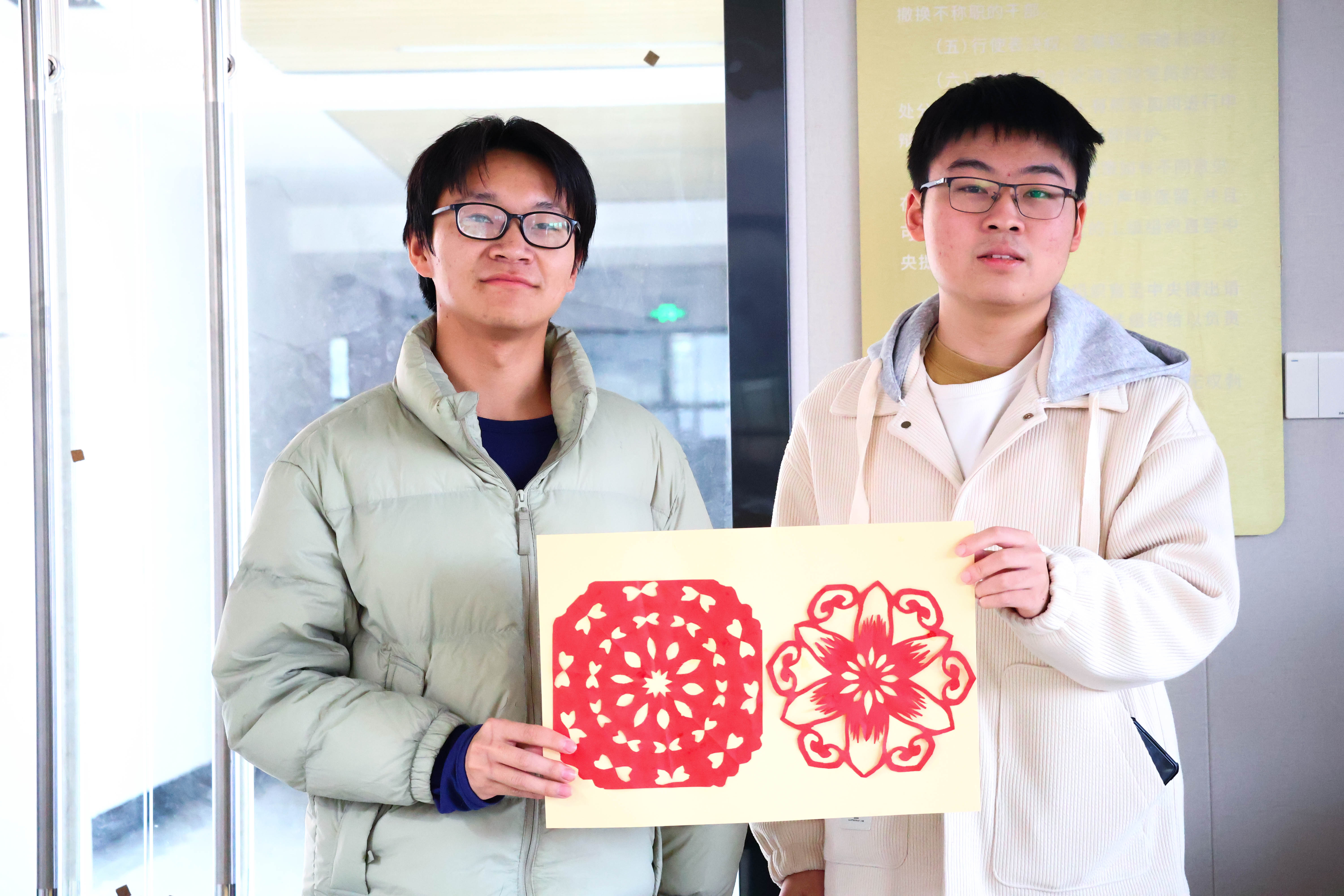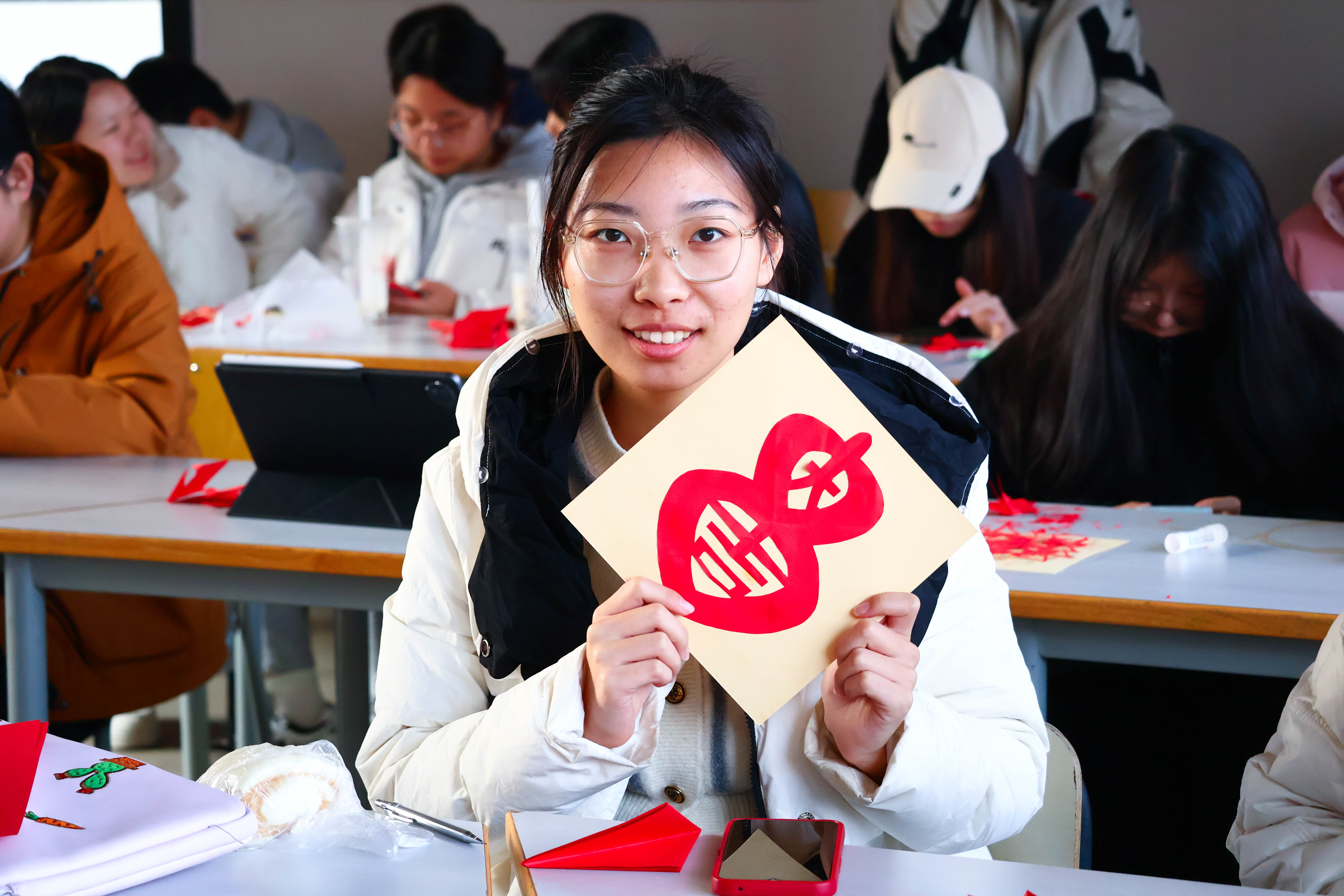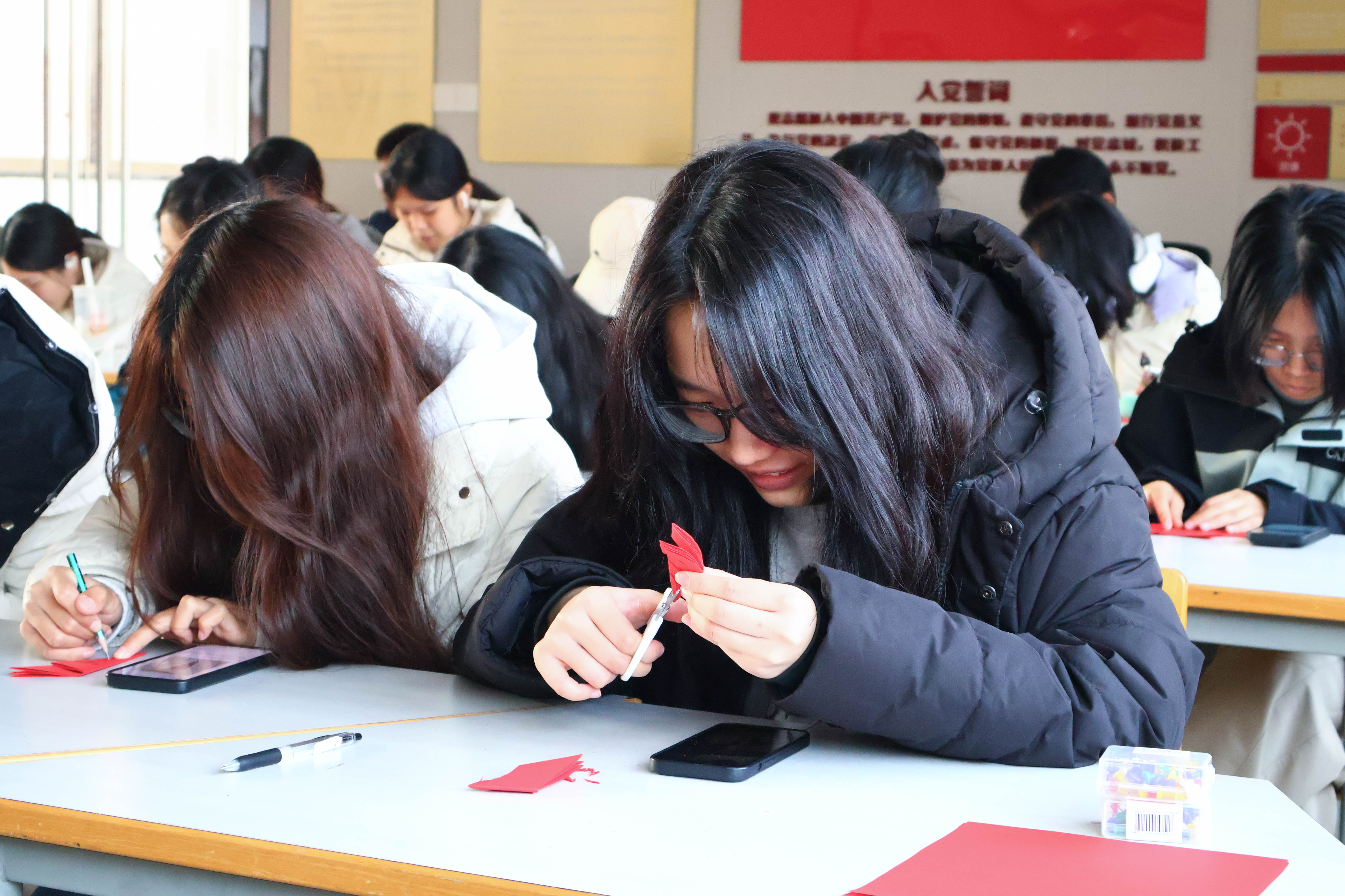 而新手小白们则在大师的耐心指导下,从简单的图案开始练习,逐渐掌握剪纸的技巧。他们或独自挥洒创意,或三两成群,互相交流、互相帮助,共同完成了一幅幅精美的窗花作品。活动现场洋溢着欢声笑语,剪刀的咔嚓声与同学们的笑语声交织成一首欢乐的交响乐。一张张红纸在巧手之下,变成了寓意吉祥、富贵的窗花,每一片都是对新年的美好祝愿,每一片都是对2025年的向往和期待。