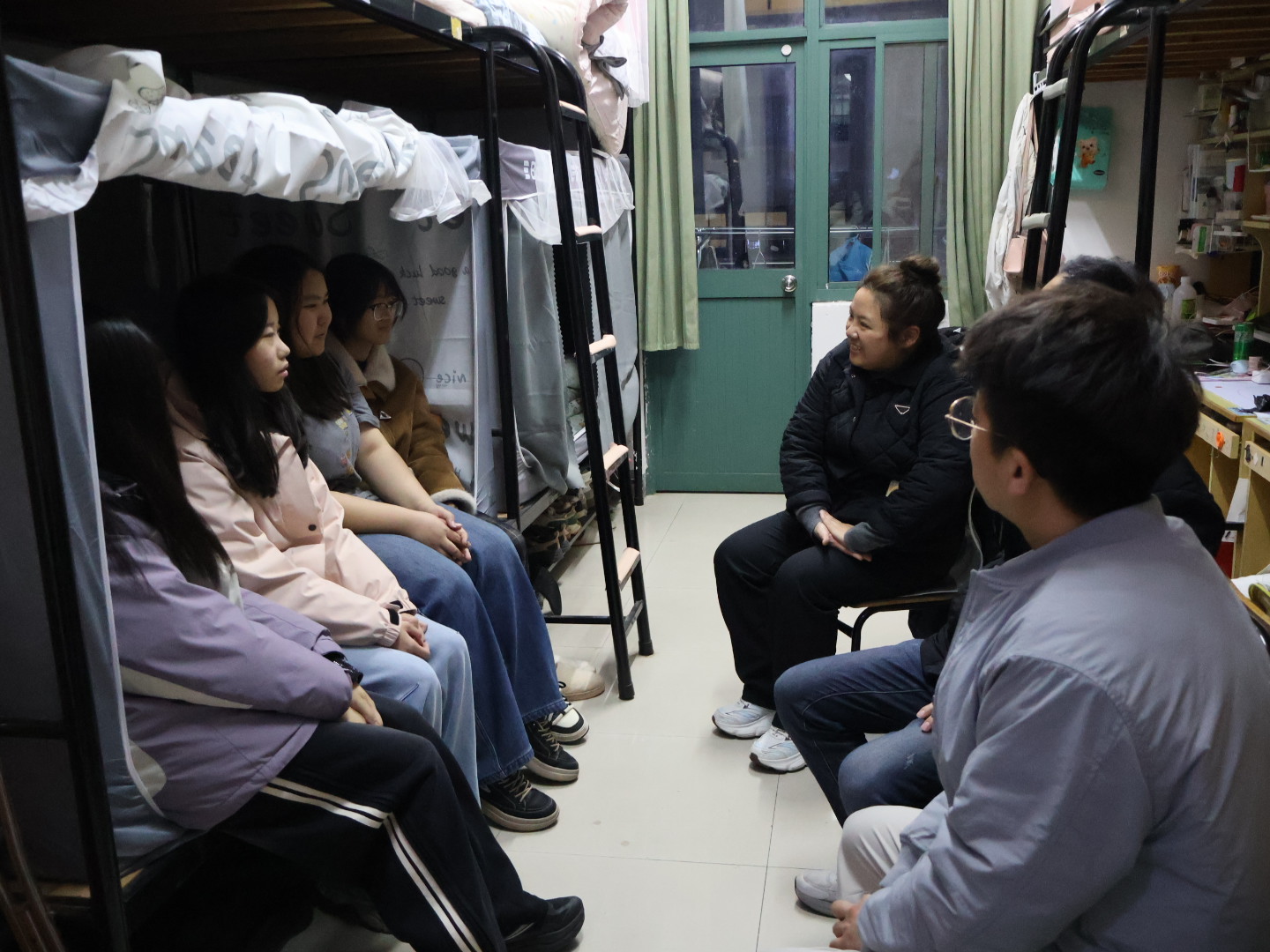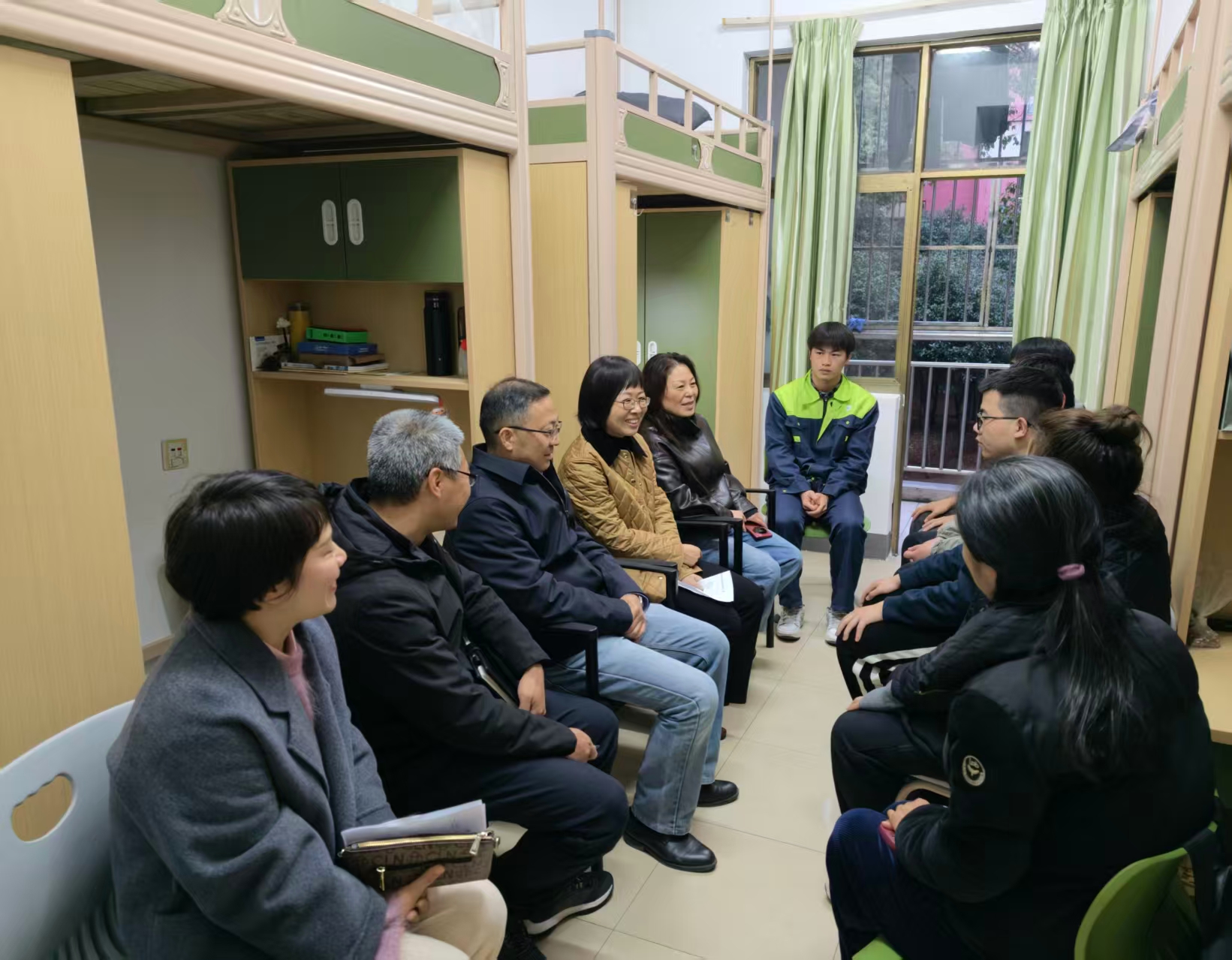 李文婷部长与同学们围坐在一起,亲切交流,从假期生活、返校路途,到新学期的课程安排、未来规划,她细致地询问了大家的近况,一句句贴心的话语迅速拉近了师生距离。在专升本学生寝室,她鼓励大家珍惜本科阶段的学习时光,敢于设定更高目标、勇于突破自我。在设施园艺专业大一学生寝室中,她认真倾听同学们对校园文化活动的想法,对大家的创意表示肯定。“你们平时有啥点子,尽管说,老师们帮着一块琢磨。”临走时,她这样叮嘱。