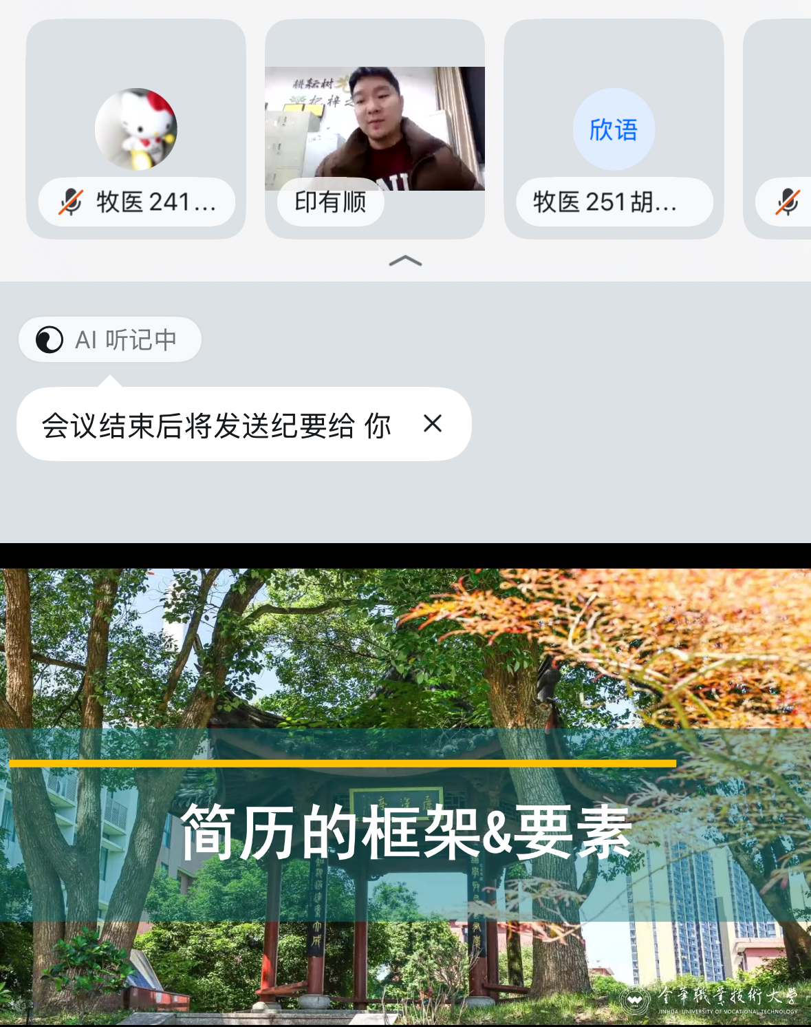 如果说朱书记的授课回答了“为何选择农业”,那么学院就业辅导员印有顺的专题指导则聚焦“如何走进农业”。面对学生“简历石沉大海”“面试不知如何展示优势”等现实困惑,他依托近五年涉农专业就业数据,逐一拆解专升本、企业就业、基层项目等多元路径。简历门诊环节,他现场演示如何将田间地头的实践经验转化为用人单位看得见的竞争力;模拟面试中,他一针见血地指出:“用人单位看重的不只是学历,更是你下得了地、解得了难、沉得下心的本事。”