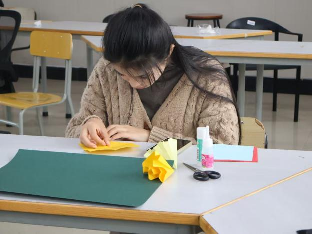 随着纸花陆续制作完成,同学们的创作之旅也告一段落。动手实践的过程中,同学们不仅收获了完成作品的满满成就感,更在与身边伙伴的互动中,传递了温暖与欢喜。这些细碎的美好与真挚的心意汇聚在一起,为本次活动留下一段珍贵而难忘的共同回忆。