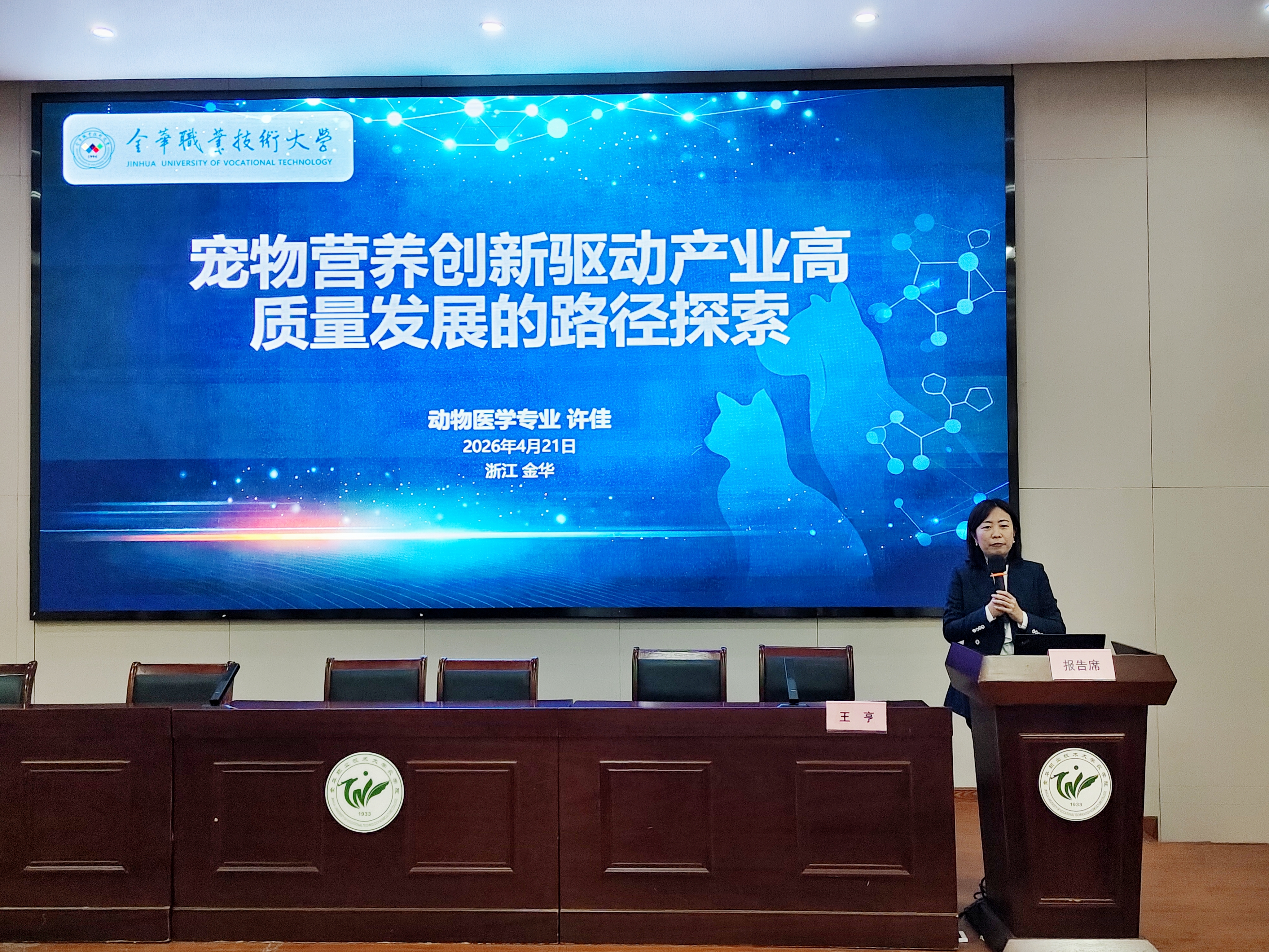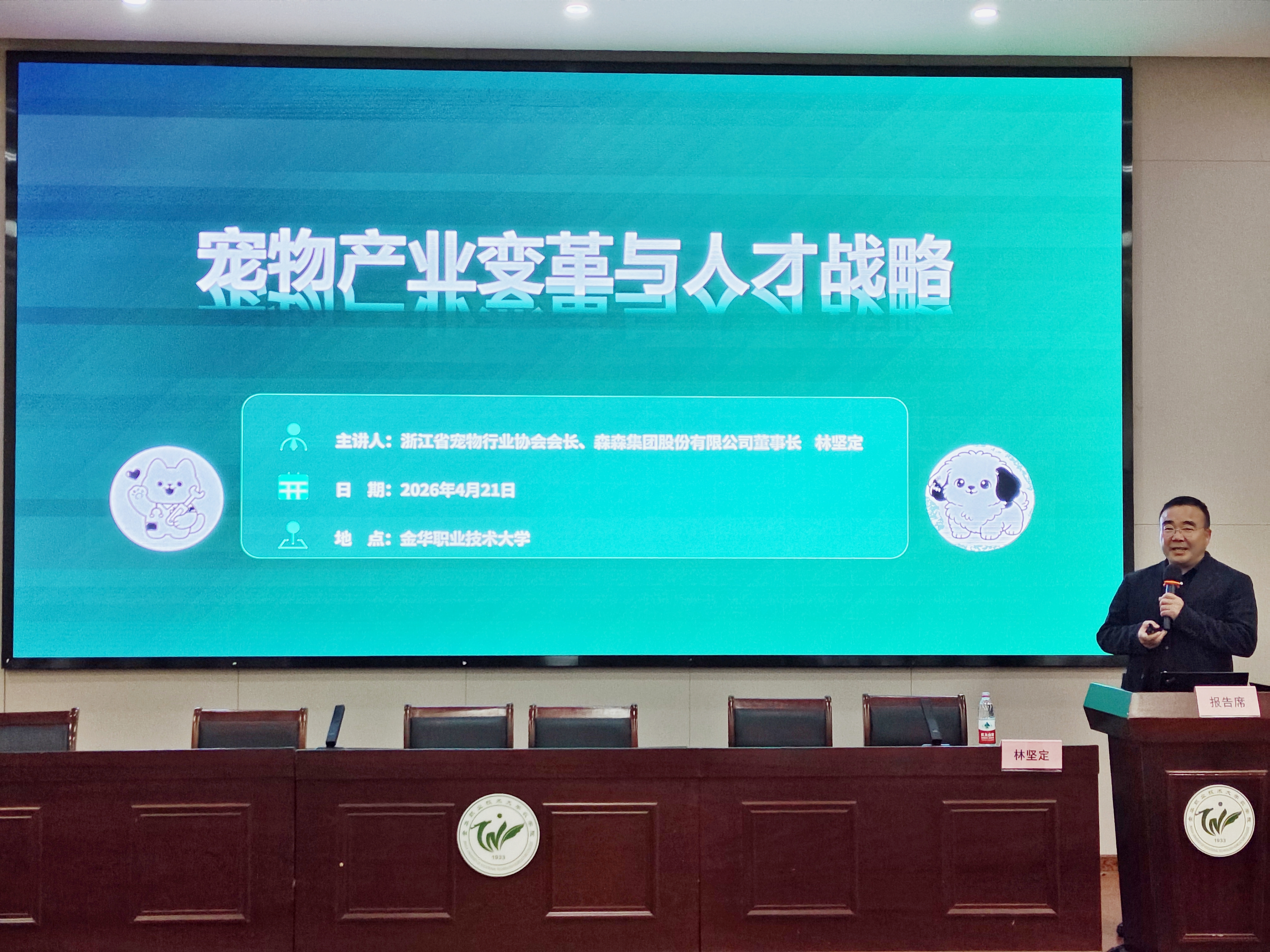 2026年4月21日,宠物医疗专业高质量发展研讨会暨宠物产业高质量发展研修班在金华职业技术大学成功举办。金华职业技术大学副校长陈夙、金华市农业农村局党委书记、局长钱福安、金华市畜牧农机中心主任崔旭勇、浙江省宠物行业协会会长、森森集团董事长林坚定,业内专家、宠物头部企业、校友及师生代表出席活动,共探宠物医疗专业建设与产业高质量发展新路径。