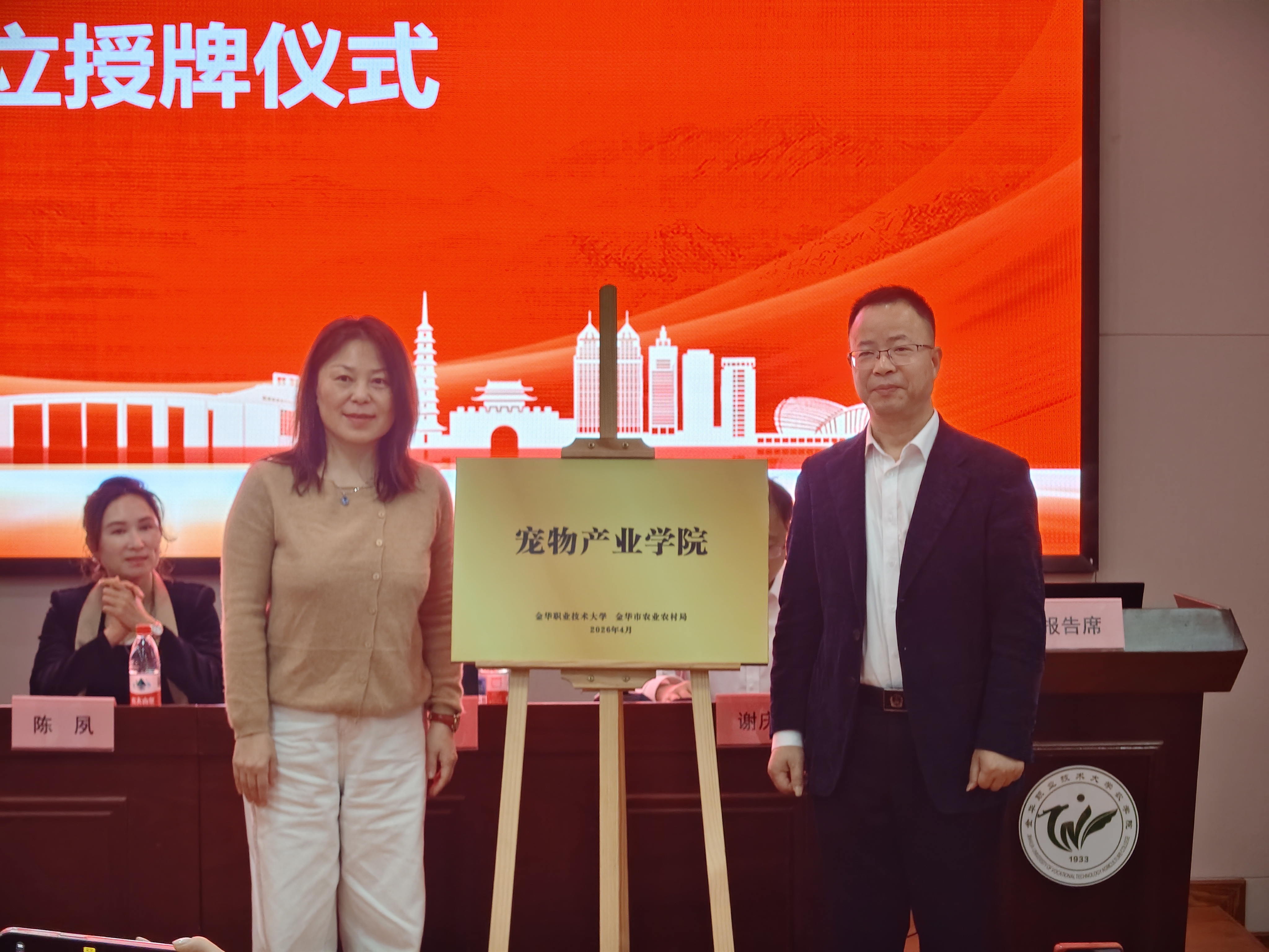 活动现场举行了金华职业技术大学与金华市农业农村局共建宠物产业学院成立及授牌仪式。宠物产业学院的成立,标志着我校在宠物产业领域“专业链对接产业链”迈出实质性一步,并将以此为载体,凝聚多方合力,打造集人才培养、技术创新、社会服务、就业创业、行业引领于一体的区域性宠物产业产教融合高端平台,更好为浙江乃至全国宠物产业输送“下得去、留得住、用得上”的高层次技术技能人才。